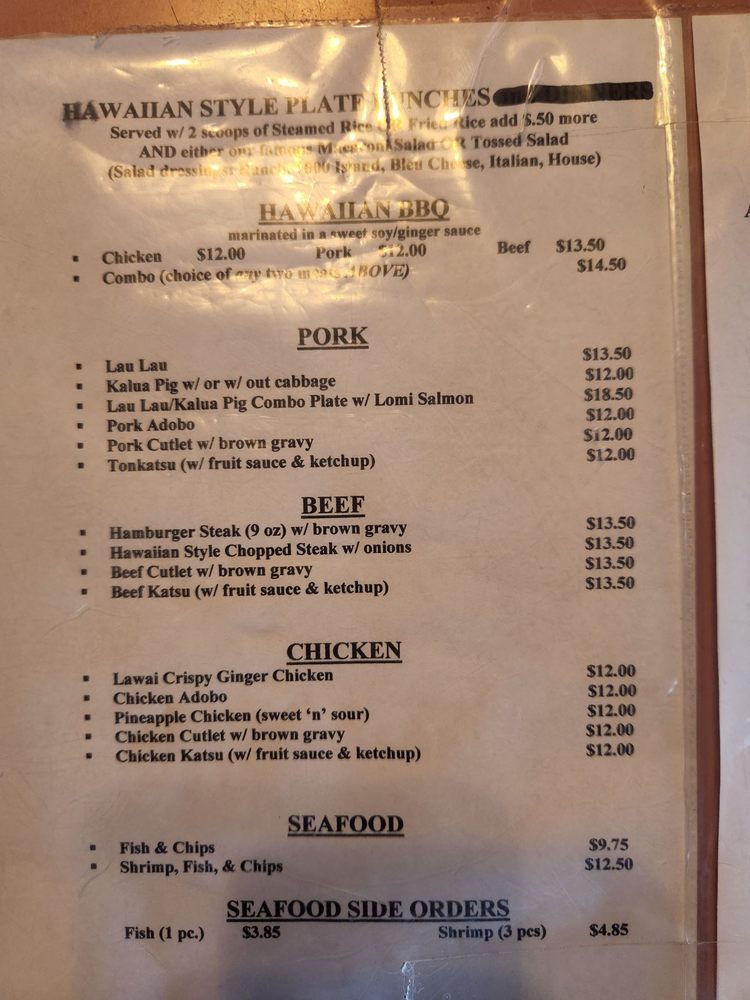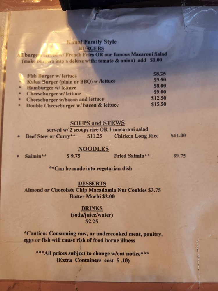 Kauai Family Restaurant, a Hawaiian and Noodle restaurant located in Seattle, offers a variety of dishes suitable for the whole family. With options for delivery, takeout, and reservations, this casual spot with moderate noise is perfect for breakfast or lunch gatherings. The menu features soups, noodles, and limited vegetarian options, all served with waiter service and alcohol available. The restaurant is dog-friendly, with outdoor seating and compostable containers for eco-conscious diners. With gender-neutral restrooms and Wi-Fi access, Kauai Family Restaurant caters to a diverse range of customers. Don't miss the chance to try their specialties and experience the flavors of Hawaii at this welcoming establishment.
